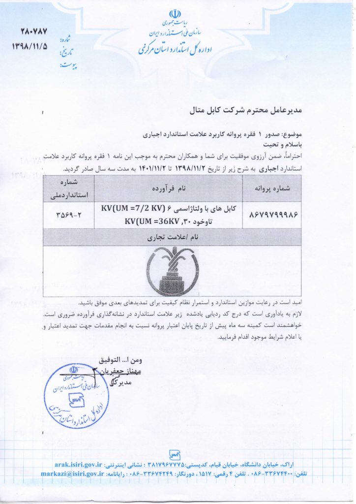 آدرس کارخانه: کیلومتر 120 اتوبان تهران-ساوه، شهرک صنعتی کاوه، خیابان شانزدهم، کارخانه کابل متال